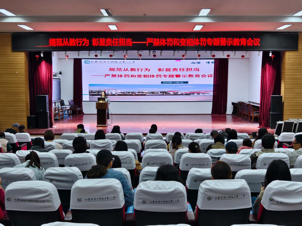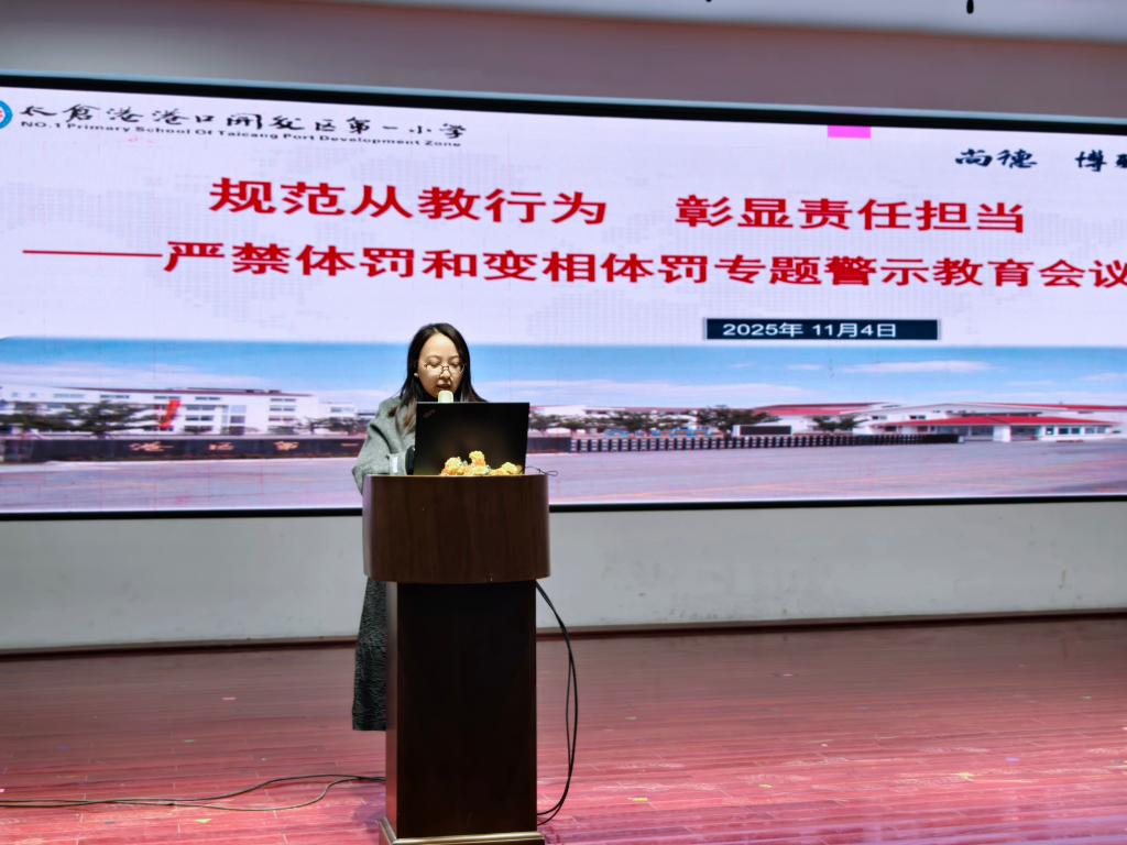 为进一步加强教师职业道德建设、规范教师从教行为,大力提高广大教师育人能力、班级管理能力,杜绝教师体罚、变相体罚学生的行为发生,2025年11月4日上午,太仓港港口开发区第一小学组织全体教师开展“严禁体罚与变相体罚”专题警示教育会议。