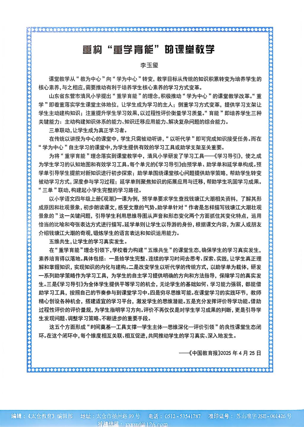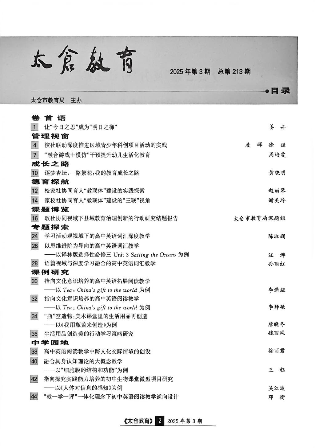 谢美玲的《家校社协同育人“教联体”建设的“三联”视角》发表于《太仓教育》2025年第3期