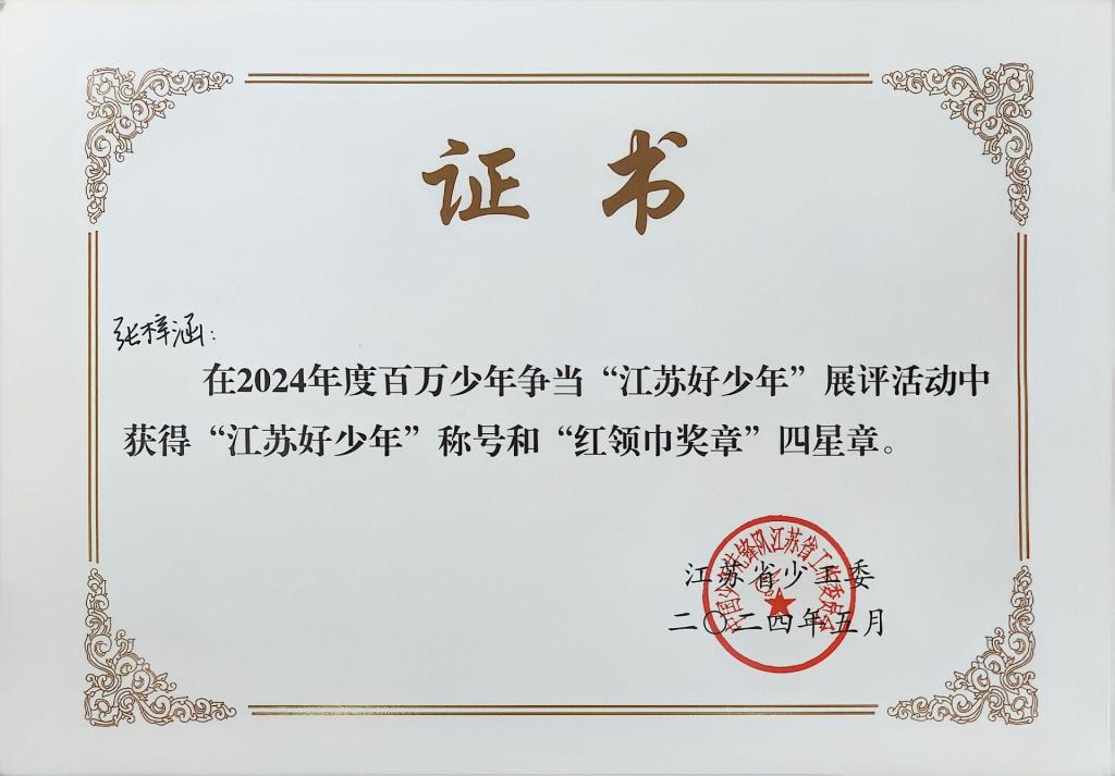 2024.6 陆芯乐被评为2024年“苏州好少年”