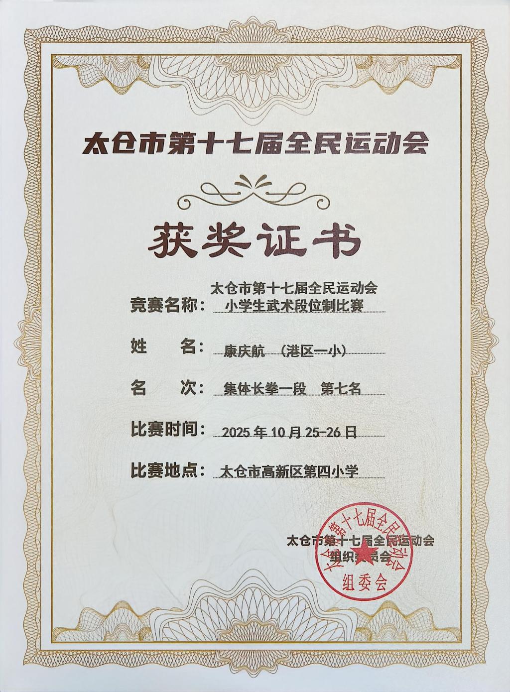 2025.10 康庆航获太仓市武术段位制比赛集体长拳一段第七名