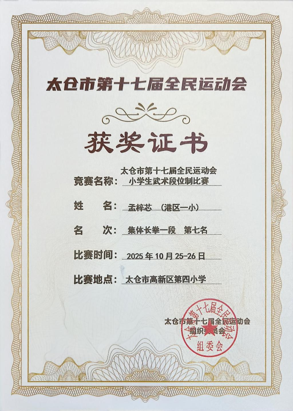2025.10 孟梓芯获太仓市武术段位制比赛集体长拳一段第七名