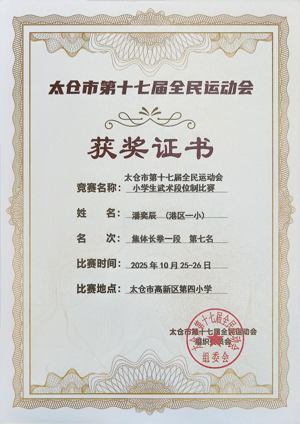 2025.10 潘奕辰获太仓市武术段位制比赛集体长拳一段第七名