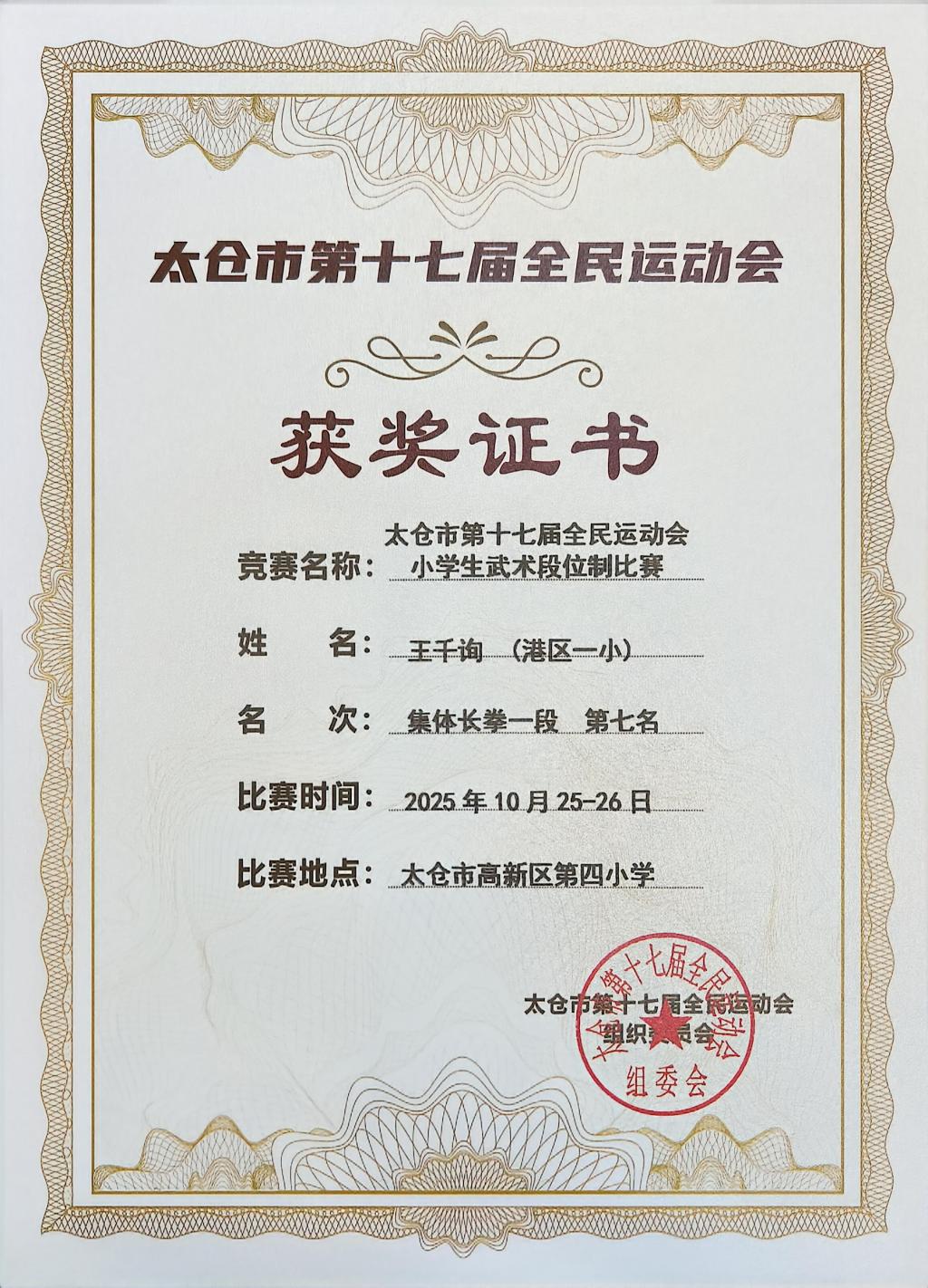 2025.10 王千询获太仓市武术段位制比赛集体长拳一段第七名