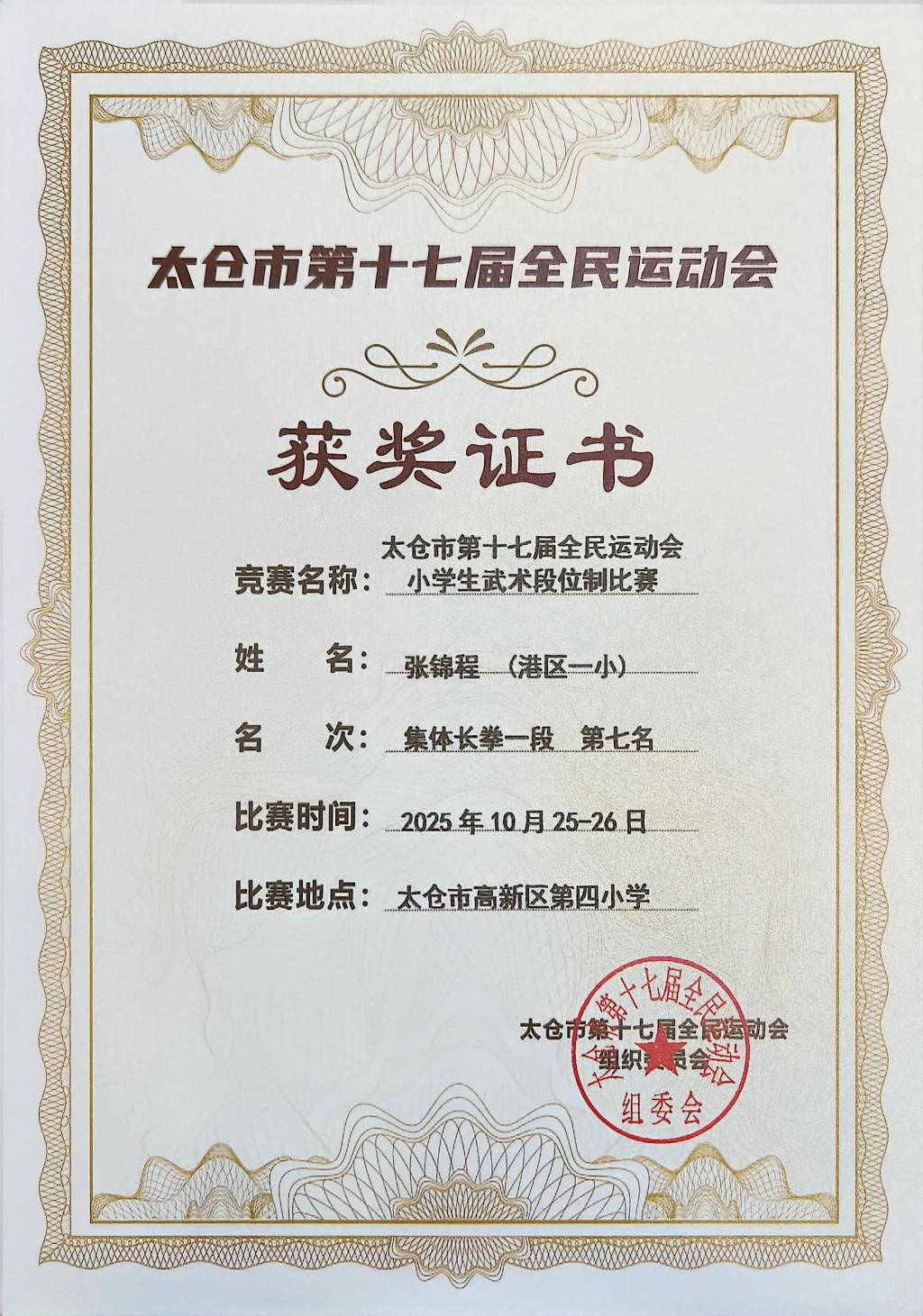 2025.10 张锦程获太仓市武术段位制比赛集体长拳一段第七名