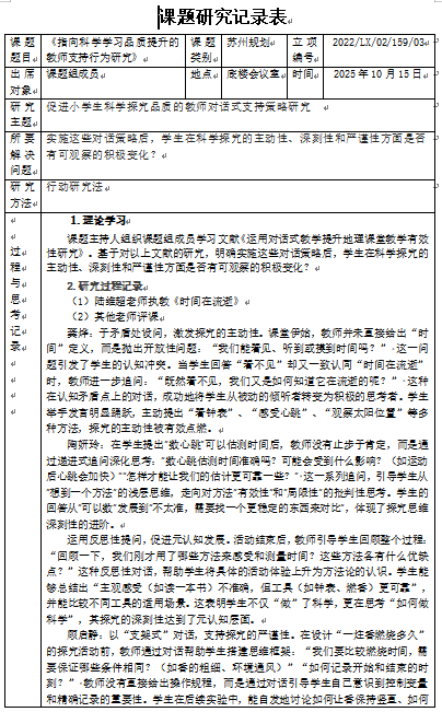 2025年10月研讨活动:《指向科学学习品质提升的教师支持行为研究》课题研究记录表